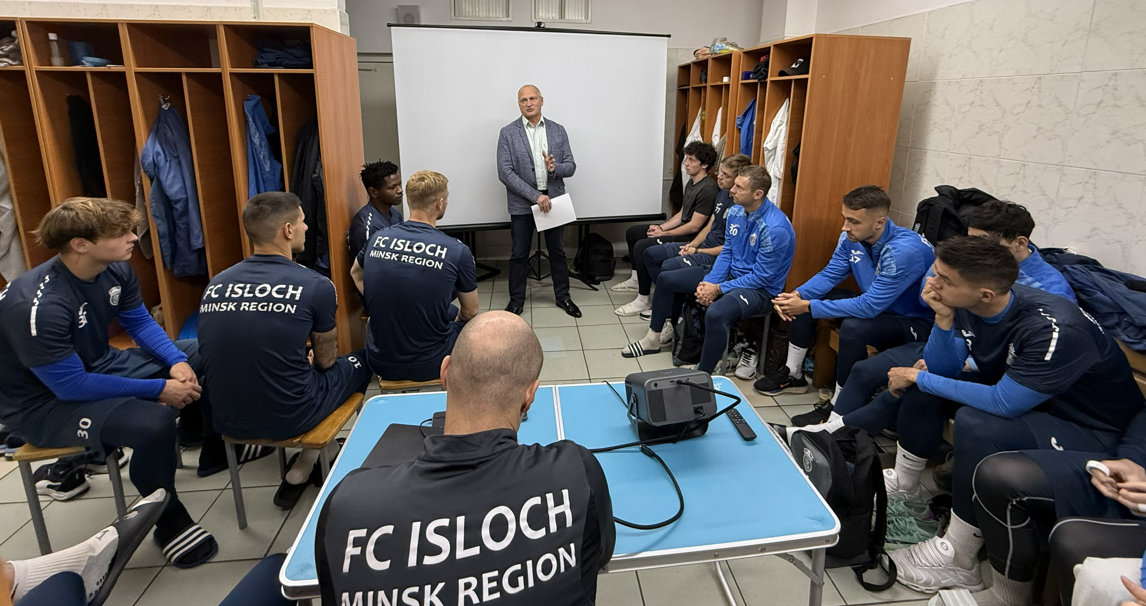 В преддверии завершения футбольного сезона-2025 с сотрудниками и игроками футбольного клуба «Ислочь» было проведено профилактическое мероприятие, посвященное статьям дисциплинарного кодекса АБФФ, которые связаны с борьбой против коррупции (ст. 98), договорных матчей (ст. 99), азартных игр (ст. 99-1) и финансовых стимулирований (ст. 99-2).