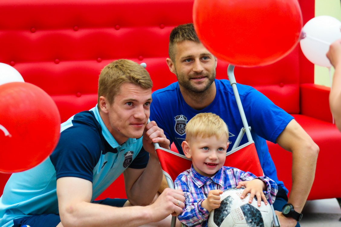 Кроме этого, у воспитанников и гостей центра была уникальная возможность познакомиться и пообщаться с профессиональными спортсменами. Второй год подряд футбольный клуб «Ислочь» принимает активное участие в этом фестивале. В этот раз игроки команды Джемал Куршубадзе и Александр Папуш показывали различные финты с мячом, с большим энтузиазмом играли с детьми и фотографировались со всеми желающими.
