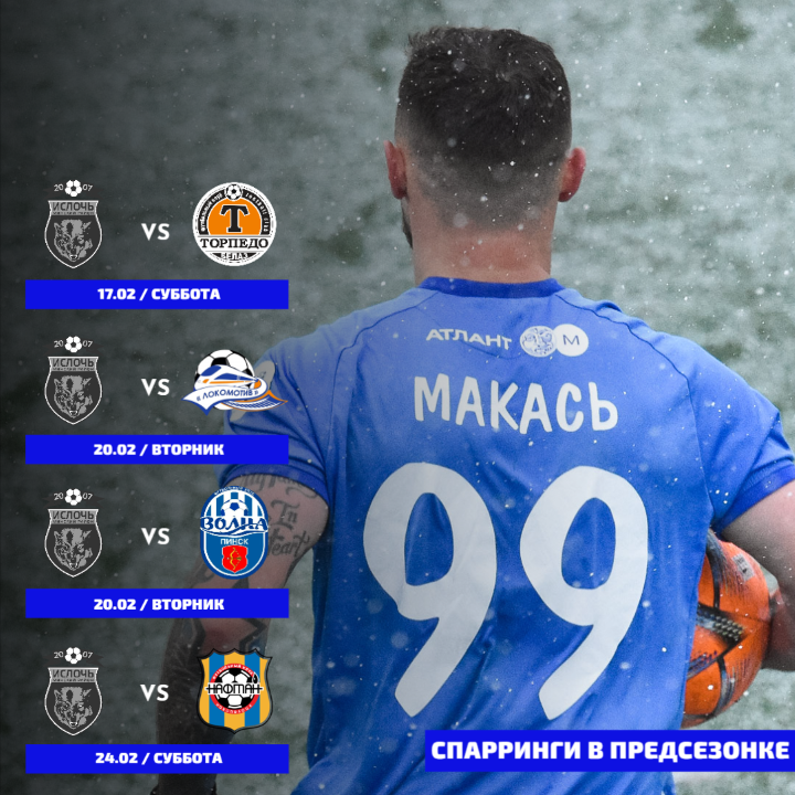 Стал известен календарь контрольных игр основной команды «Ислочи». До начала сезона мы встретимся с представителями первой лиги и высшего дивизиона. Полное расписание вашему вниманию: