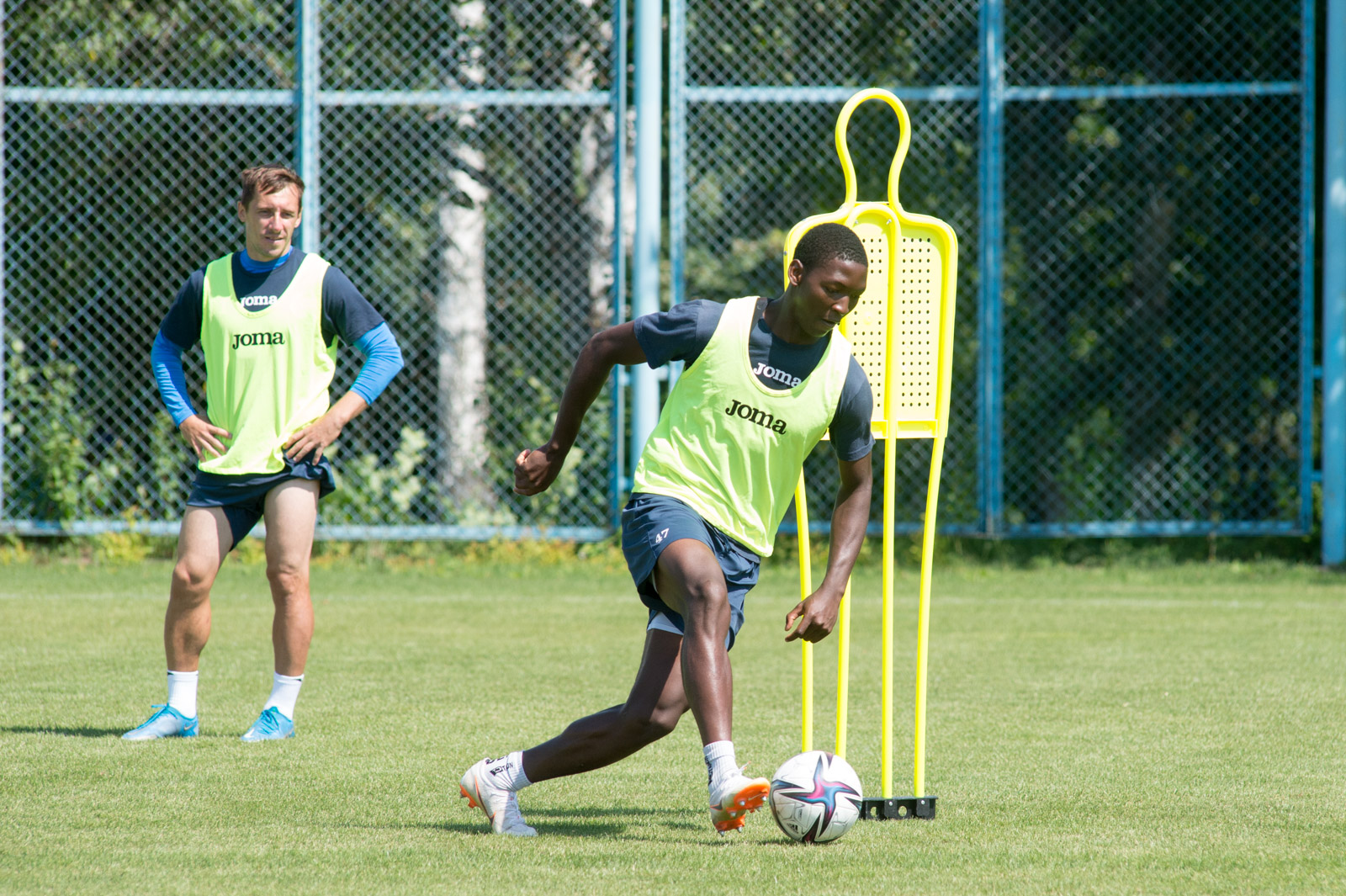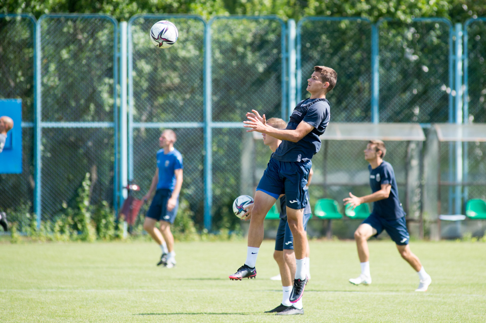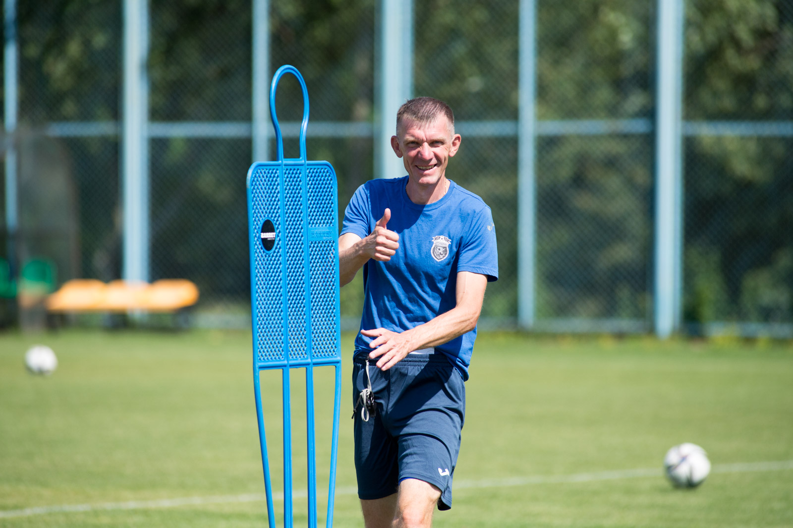 Футболисты же позанимались на ковриках, выполнили работу с барьерами, а также много времени занимались с мячами. Группа вратарей вместе с тренером Андреем Ашихминым после отработки упражнений пригласила к себе Вулфи и кое-чему его научила.