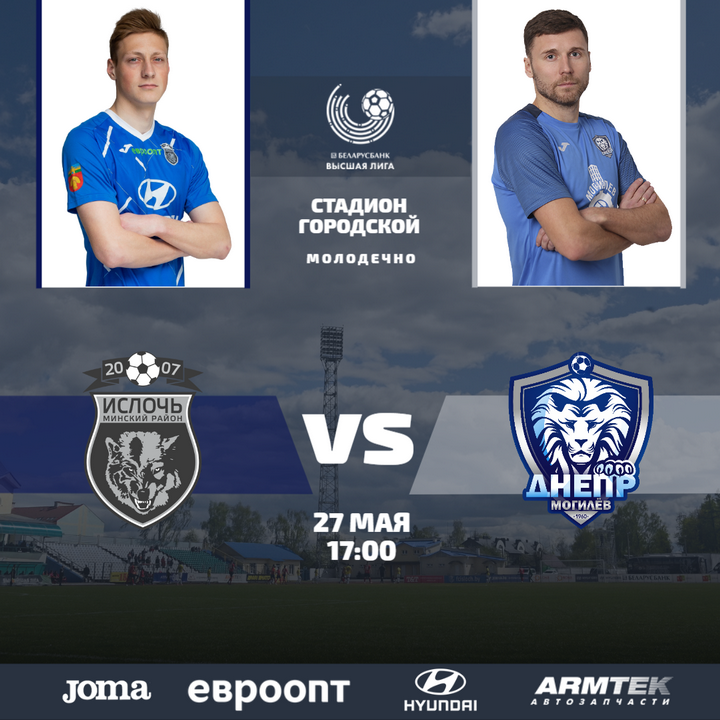 В пятницу, 27 мая, футболисты «Ислочи» встретятся дома с могилевчанами. Начало игры в 17:00. Вход – свободный.