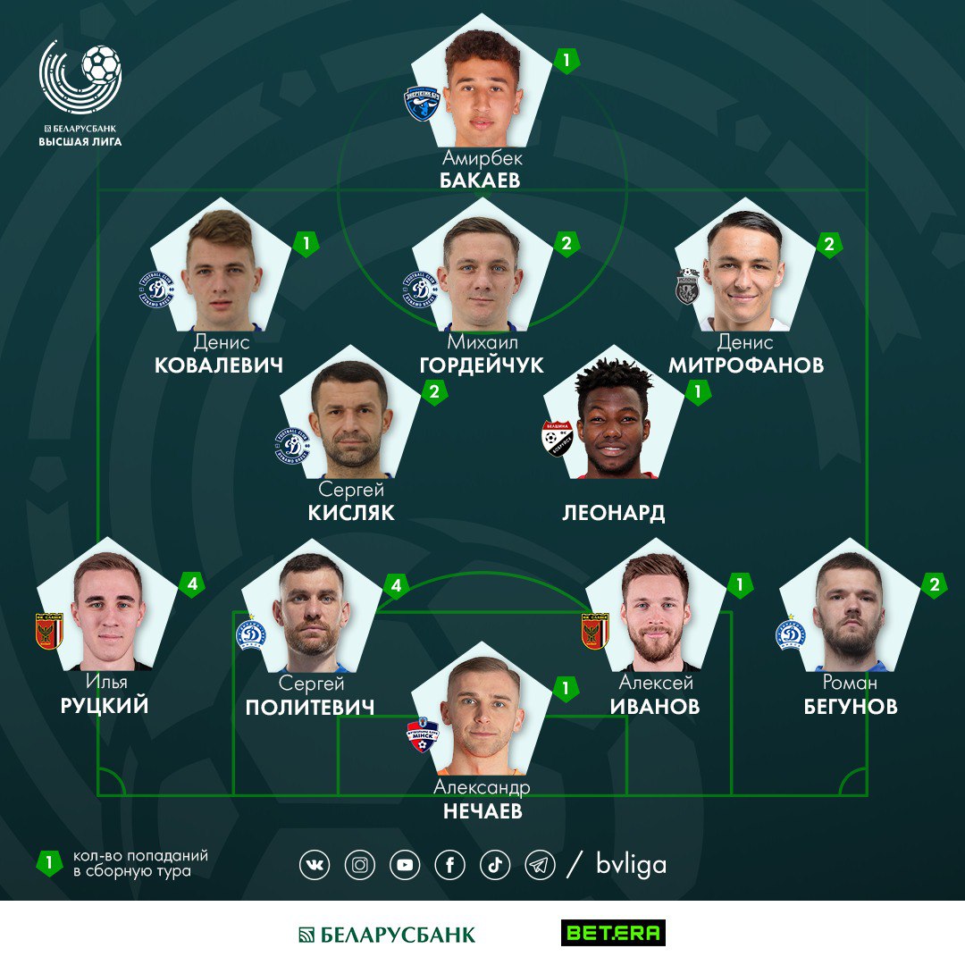 Сегодня была опубликована символическая сборная по итогам матчей прошедшего тура. Приятно отметить, что в ней нашлось место Митрофанову, который вышел на замену во втором тайме домашнего поединка с минским «Динамо» (2:3) и отличился голом. Отметим, для Дениса это уже второе попадание в сборную тура.
