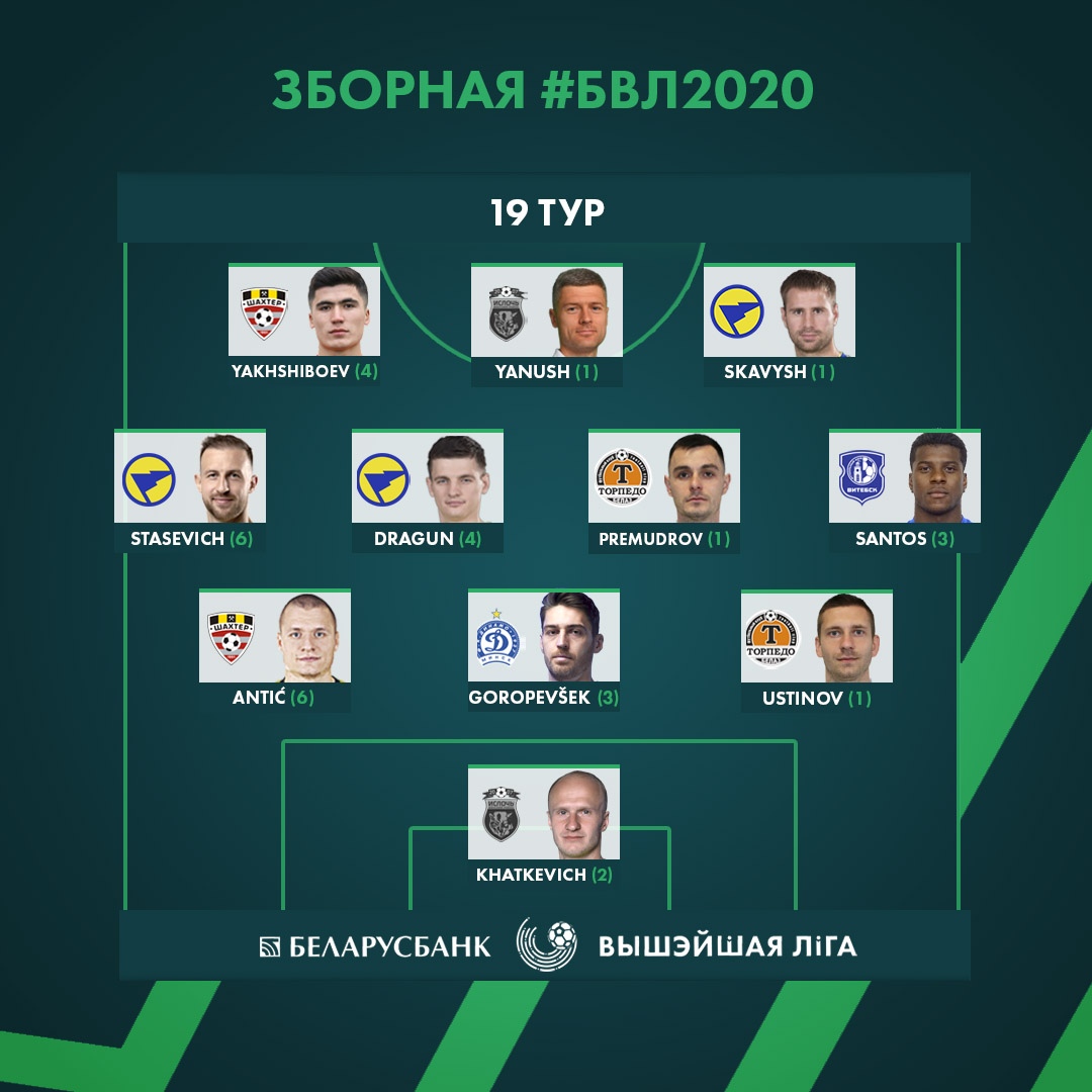 Сегодня АБФФ опубликовала символическую сборную 19 тура, в которой нашлось место игрокам нашей команды. В домашнем поединке с брестским «Динамо» вратарь Егора Хаткевич и нападающий Николай Януш отыграли все 90 минут. Егор отыграл «сухой» матч, а Николай отметился дублем в ворота чемпиона страны.