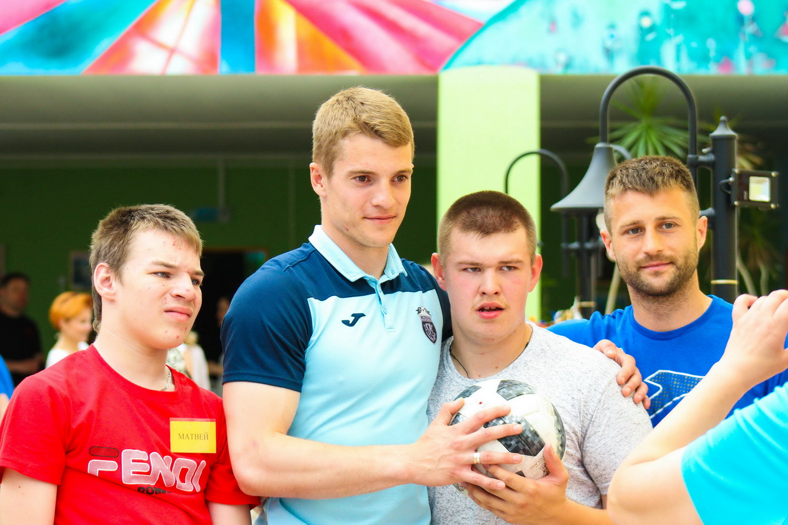 Кроме этого, у воспитанников и гостей центра была уникальная возможность познакомиться и пообщаться с профессиональными спортсменами. Второй год подряд футбольный клуб «Ислочь» принимает активное участие в этом фестивале. В этот раз игроки команды Джемал Куршубадзе и Александр Папуш показывали различные финты с мячом, с большим энтузиазмом играли с детьми и фотографировались со всеми желающими.