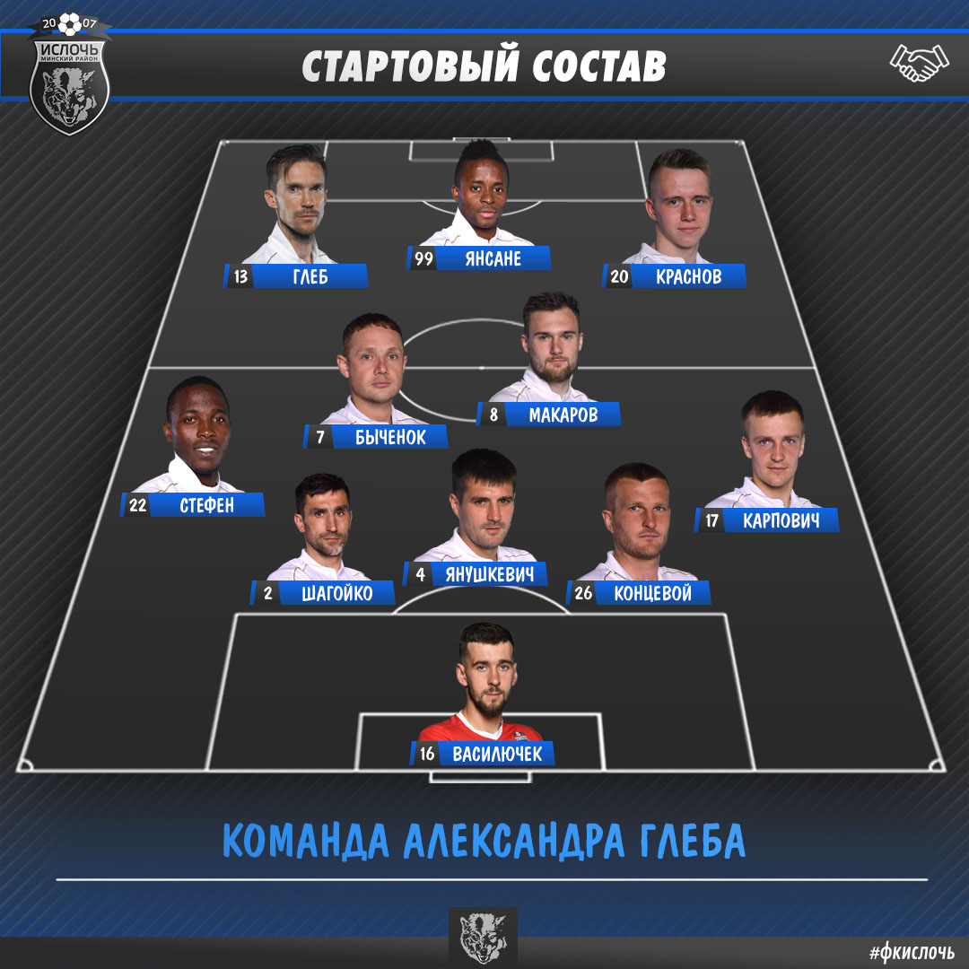 В день игры в команде Глеба была сделана одна замена: вместо Александра Макася сыграл Евгений Краснов.