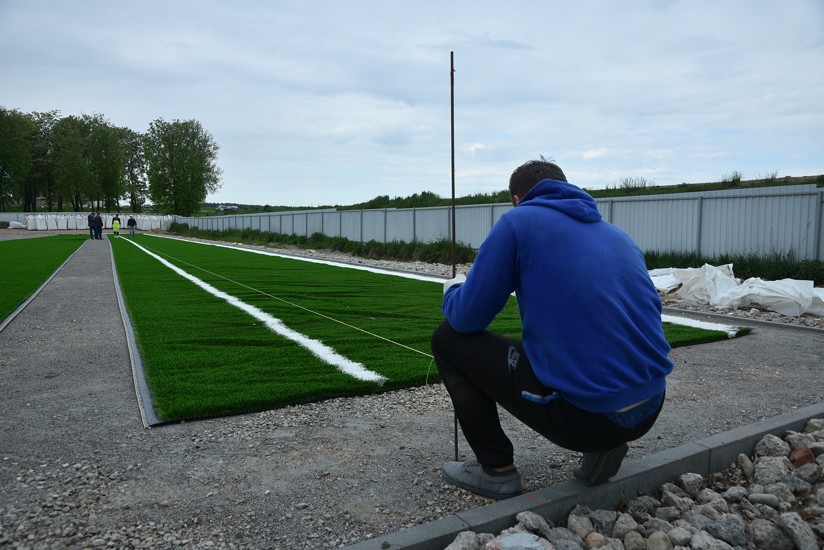 За прошедшую зиму, которая оказалась достаточно теплой, основание еще более уплотнилось, после чего было дополнительно утрамбовано. Весной подрядчик принял наше основание. Отмечу, что он ждал, пока начнется стабильная плюсовая температура (включая ночное время). Как только увидел приемлемые для себя температурные параметры, он сразу же приступил к работе. Предполагаем, что укладка газона займет минимум две-три недели, максимум – месяц. Многое будет зависеть от атмосферных осадков. При сильном дожде не рекомендуется склеивать полотна. Надеемся, что в скором времени команды нашей детско-юношеской спортивной школы, а также основной и дублирующий составы уже смогут заниматься на собственной тренировочной базе.