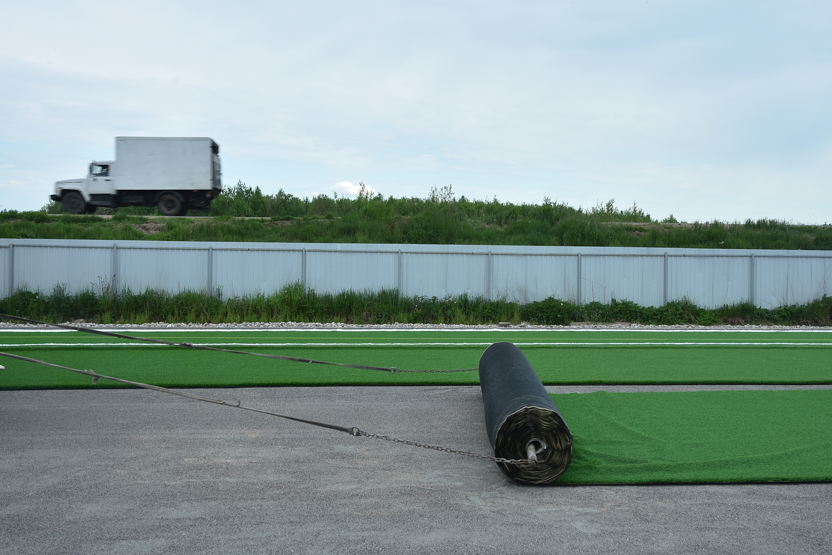 – Строительство базы началось еще в прошлом году. Велась серьезная подготовительная работа: снимался растительный грунт, убирались ненужные металлические ограждения и изготавливалось послойное основание для газона. Укладка спортивных покрытий предполагает серьезную подготовку основания, которое в свою очередь тщательно трамбовалось и укатывалось. В сентябре мы подошли к завершению этой «подушки» и были готовы начинать укладывать искусственное покрытие, но в тот момент уже была отрицательная температура в ночное время. По рекомендациям нашего подрядчика, который занимается укладкой поля, мы не стали рисковать, чтобы не портить качество работы.