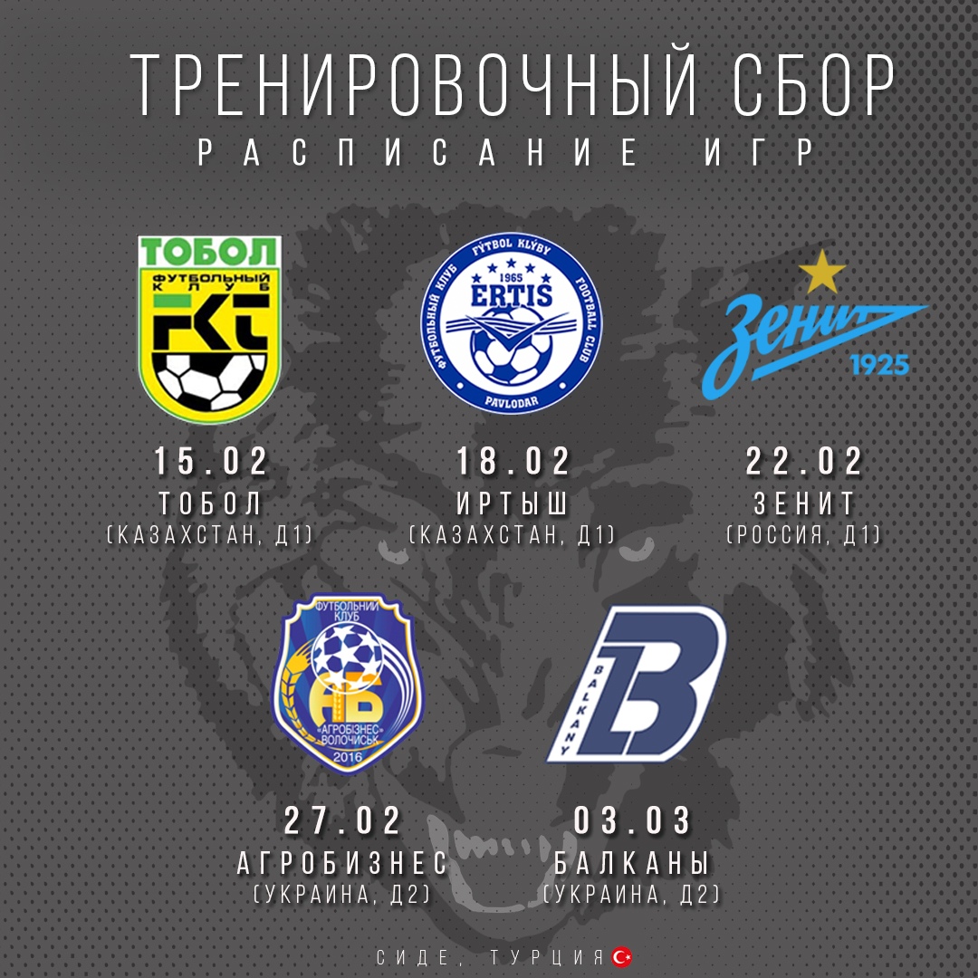 Завтра команда Виталия Жуковского отправится на учебно-тренировочный сбор в Турцию. В этом году он пройдет в городе Сиде с 12 февраля по 4 марта. Тренерский штаб запланировал пять международных товарищеских матчей с командами из России, Украины и Казахстана.