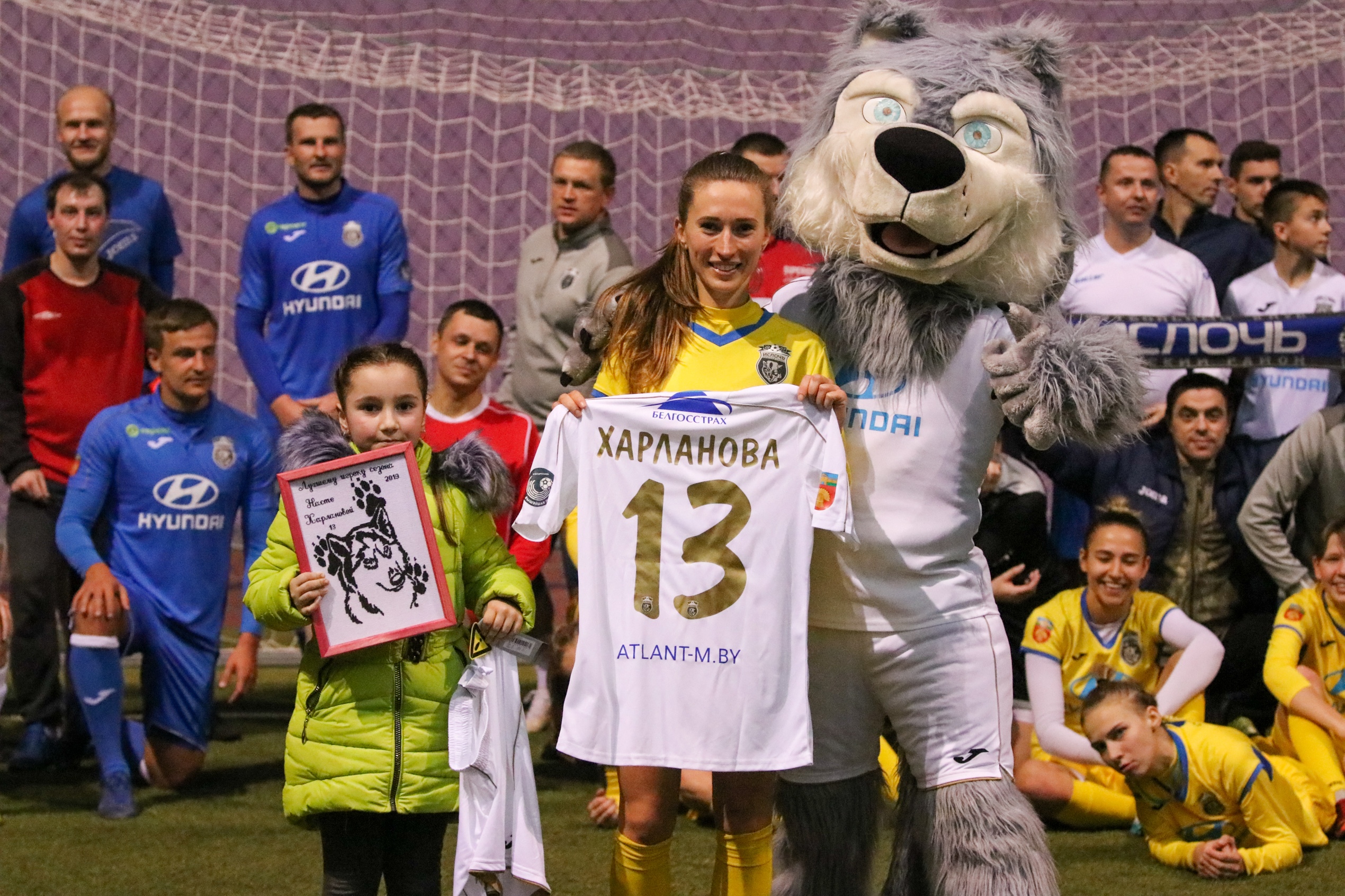 Одним из сюрпризов этой встречи было награждение лучшей футболистки сезона в составе «Ислочи-РГУОР». Анастасия Харланова получила памятные подарки от клуба и болельщиков!