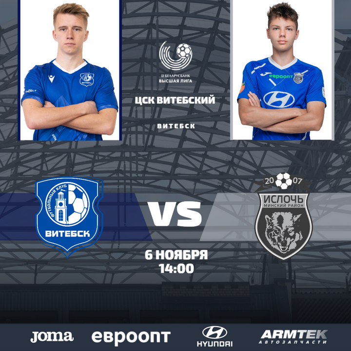 В предпоследнем туре высшей лиги «волки» сыграют с футбольным клубом «Витебск». Матч состоится 6 ноября на ЦСК «Витебский» и начнется в 14:00. Вход на игру свободный.
