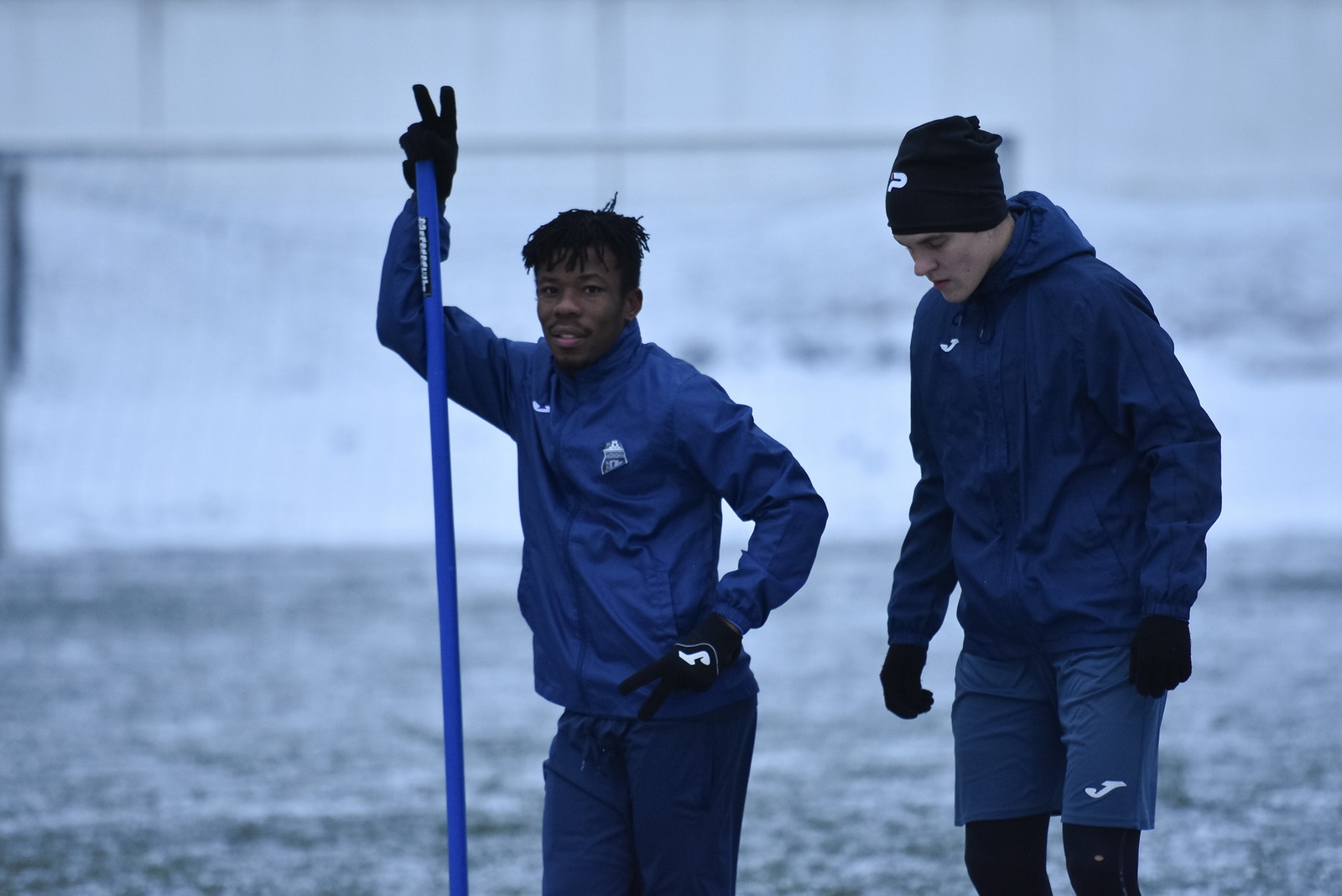 Сегодня днем на столичном стадионе по улице Сенницкой «Ислочь» проводила втягивающее занятие. До конца декабря команда будет работать в одноразовом режиме, чередуя тренировки на улице с занятиями в тренажерном зале.