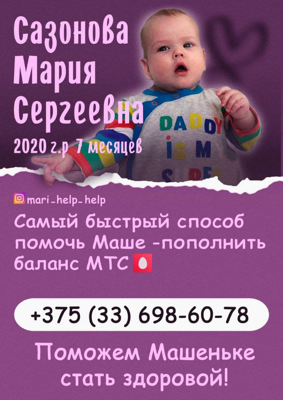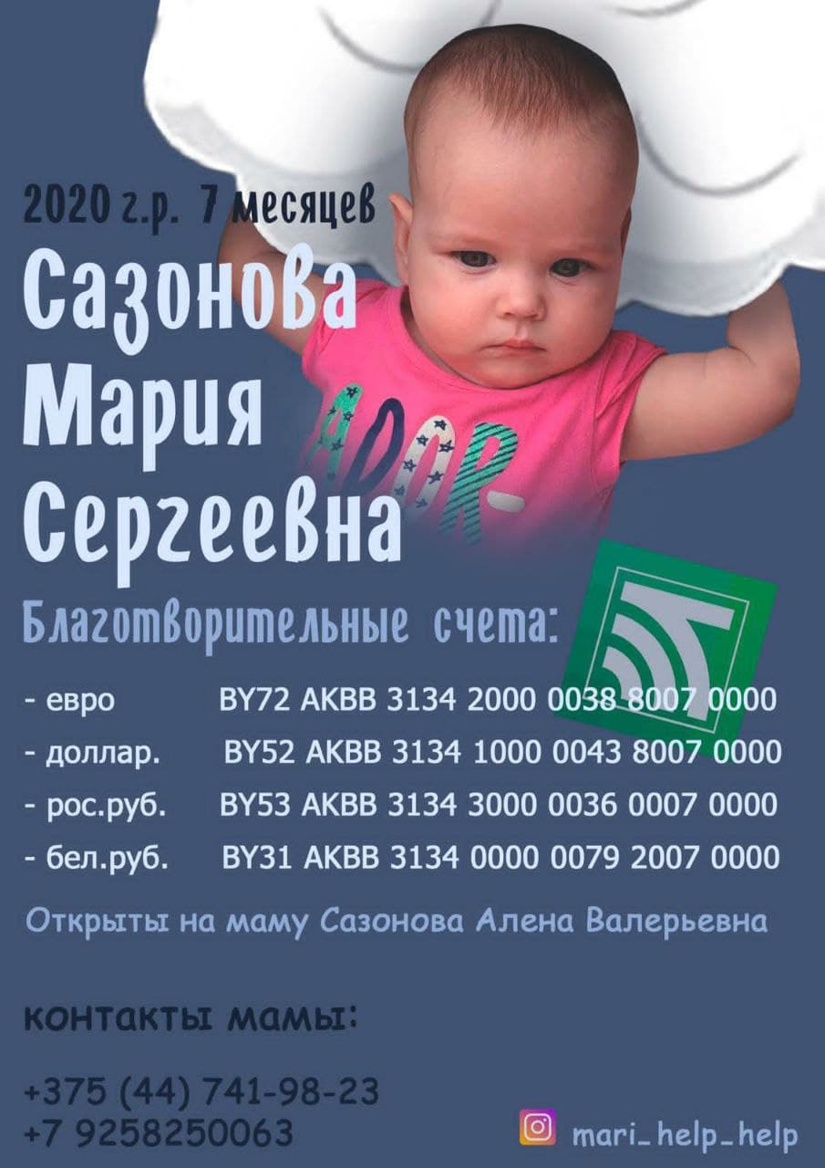 В семью экс-директора «РУХА», бывшего судьи и инспектора Валерия Исидоровича Петровича пришла беда: серьезно больна его внучка Мария Сазонова. Восьмимесячной девочке требуется помощь в оплате диагностики, лечения и реабилитации в Германии. Поддержим Машеньку – информационно (репосты) и/или финансово!