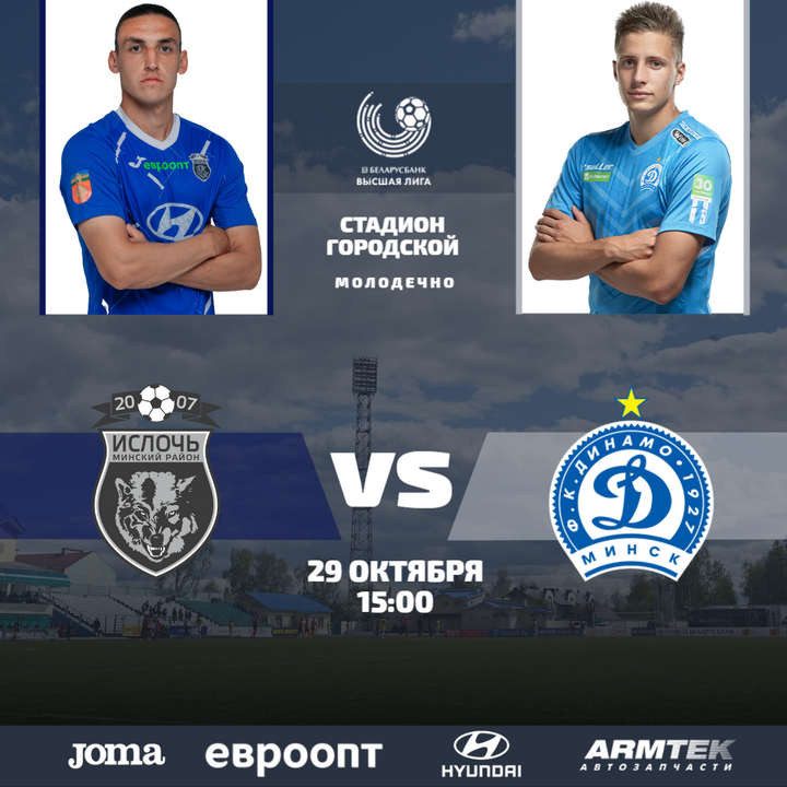 В рамках предстоящего тура команда из Минского района проведет домашний поединок с «бело-голубыми». Матч пройдет в субботу, 29 октября, на стадионе «Городской» в Молодечно. Начало в 15:00. Вход – свободный. В прямом эфире эту игру покажет телеканал «Беларусь 5».