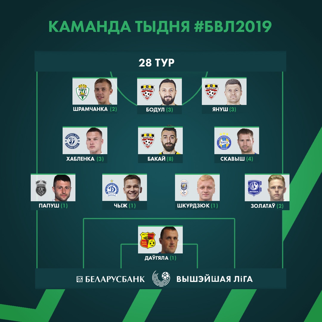 АБФФ опубликовала символическую сборную 28 тура. Среди 11 футболистов в ней оказался наш защитник Александр Папуш, который провел на поле 90 минут в игре с «Динамо-Брест» и отметился голевым пасом. Это первое попадание Папуша в команду недели. Поздравляем!