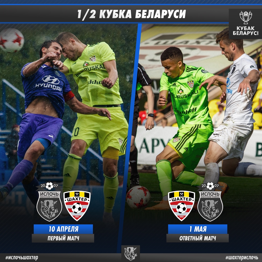 Стадия 1/2 финала состоит из двух матчей. Первая игра пройдет 10 апреля на стадионе ФК «Минск», ответная состоится 1 мая в Солигорске.
