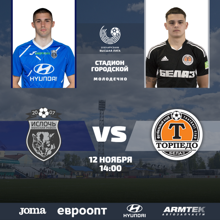 Вот и подходит к концу очередной сезон высшей лиги. В субботу, 12 ноября, команда Артема Радькова встретится с жодинцами. Матч начнется в 14:00 на городском стадионе в Молодечно. Вход – свободный. Ждем болельщиков на трибунах!