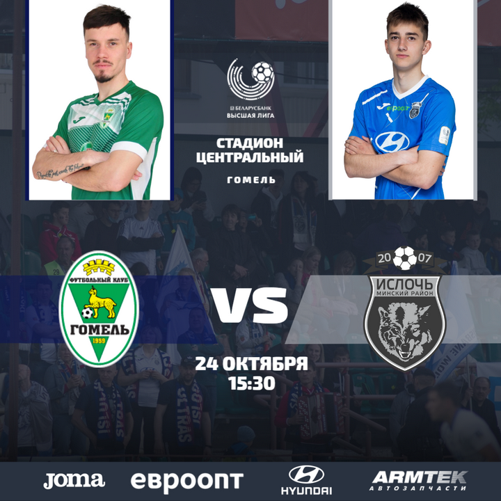 На финише чемпионата у всех команд плотный календарь. Завтра, 24 октября, парни Артема Радькова встретятся в гостях с футболистами «Гомеля». Поединок состоится на стадионе «Центральный» и начнется в 15:30. Вход – платный.